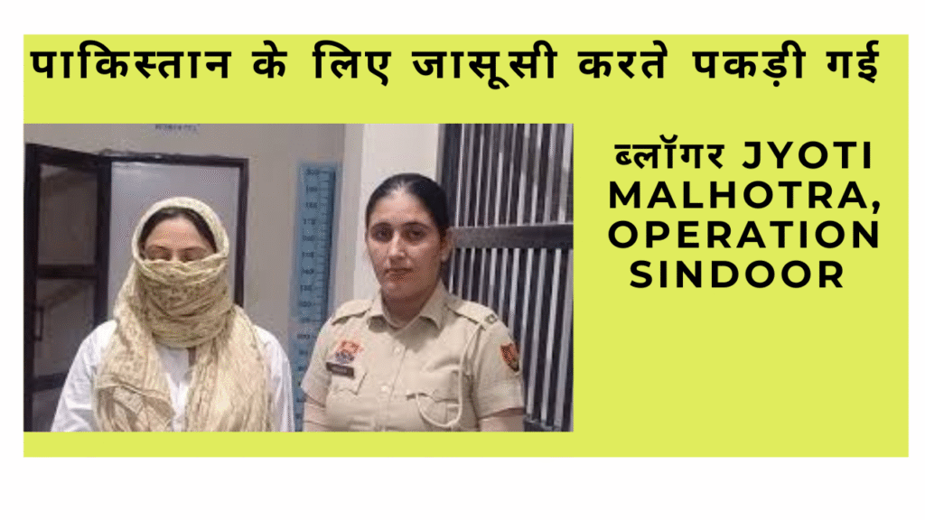 शनिवार को हरियाणा पुलिस ने ट्रैवल ब्लॉगर Jyoti Malhotra को Operation Sindoor के दौरान पाकिस्तानी खुफिया एजेंसी के लिए जासूसी करने के लिए गिरफ्तार किया गया था ANI की रिपोर्ट के मुताबिक अधिकारियों ने बताया कि उसे 5 दिन की पुलिस डिमांड पर भेजा गया है Jyoti अपने YouTube channel Travel With Joe,जो के लिए जानी जाती है जिनके करीब 4 लाख से अधिक Subscribersहैं और Instagram पर 1.30 लाख से अधिक फॉलोअर्स हैं शनिवार को हिसार की न्यू अग्रवाल एक्सटेंशन के इलाके से हिरासत में लिया गया है